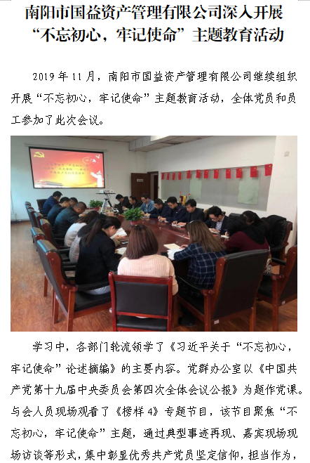 南陽(yáng)市國(guó)益資產(chǎn)管理有限公司深入開展“不忘初心,牢記使命”主題教育活動(dòng)
